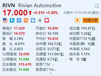 电动汽车制造商Rivian Automotive(RIVN.US)涨5%,报17美元。Rivian计划发行至多150亿美元的应税债券,为其在佐治亚州的一家电动汽车工厂提供资金。Rivian曾在2021年表示,计划在佐治亚州建立工厂,并在当时表示,该工厂将在2024年投产。